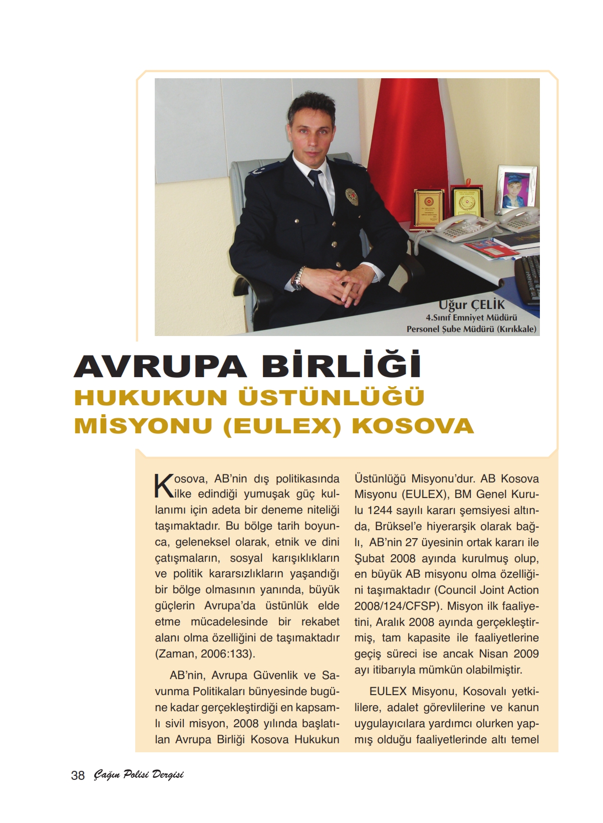 Türkiye, halihazırda EULEX Misyonu‘na 64 personelle (63 polis ve 1 hâkim) katkı sağlamakta olup, bu çerçevede misyona katkıda bulunan AB üyesi olmayan ülkeler arasında ABD’den sonra ikinci konumda bulunmaktadır. (http://www.mfa. gov.tr/i_-turkiye_nin-guvenlikperspektifleri- ve-politikalari. tr.mfa erş.tar.19.10.2011)