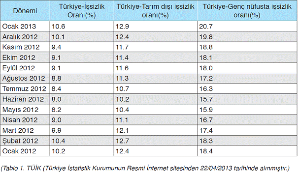 sayısı değildir. Aşağıdaki tablodaki işsizlik yüzdelerinde yer alan işsiz gençlerimizin